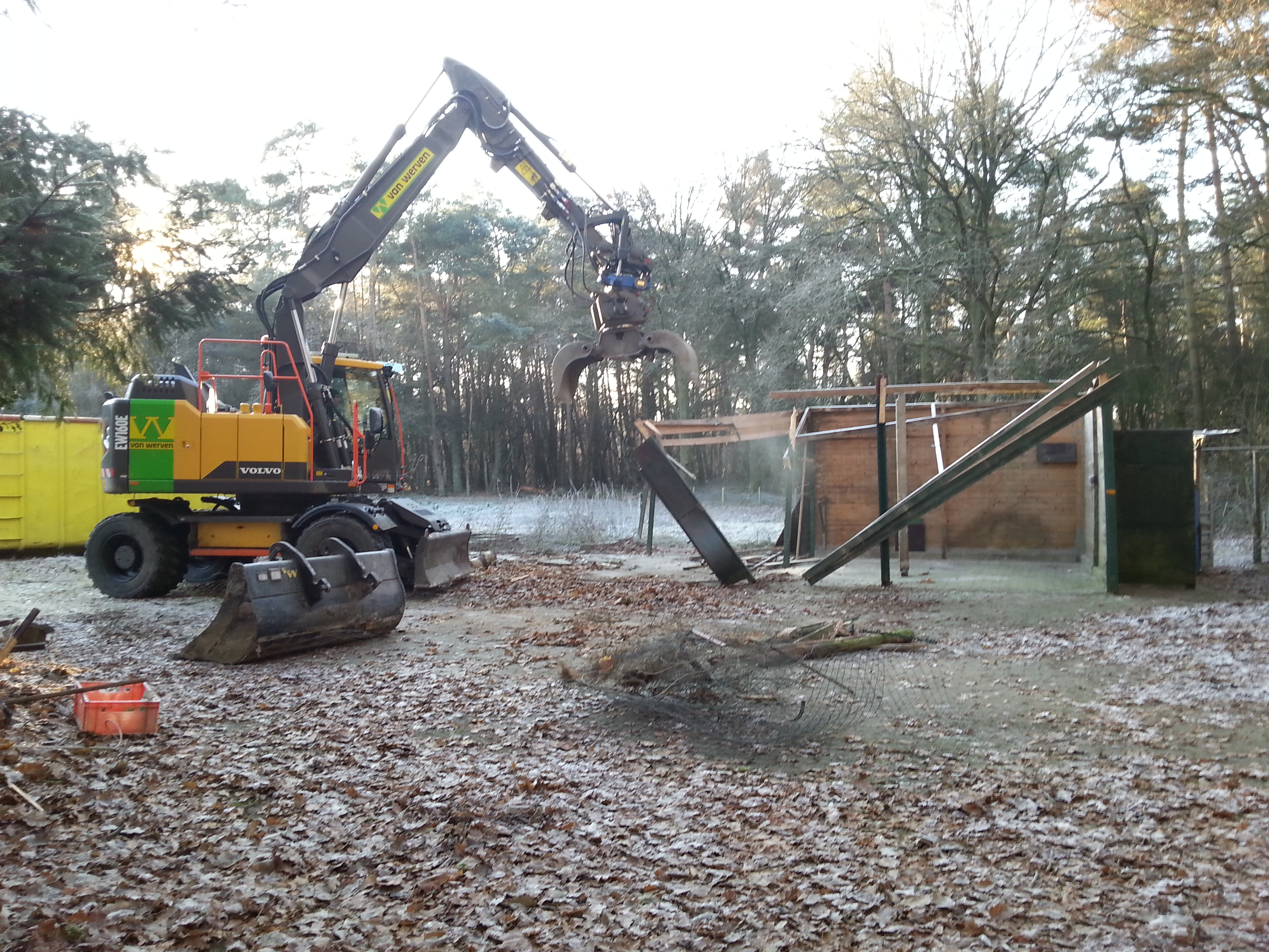 En inmiddels is de aannemer begonnen met de sloop van alle opstallen en hokjes. Om op die manier uiteindelijk ruimte te maken voor een nieuw te bouwen schuur, die past in de omgeving en bij de uitstraling van dit mooie terrein.